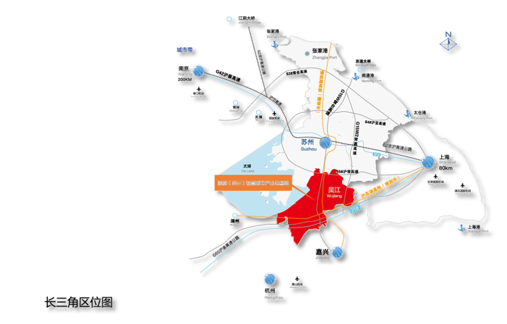 国测(苏州)智慧城市产业化基地,选址吴江区太湖新城,是长三角区域城际交通网的重要节点。20分钟到达苏州老城区,1小时到达上海虹桥机场,2小时可达南京, 30分钟直达京沪高铁苏州站,未来将实现一小时“环太湖经济圈”的五市联通。