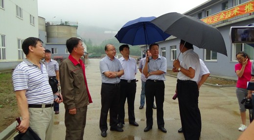 2013年8月7日下午,丹东市委书记戴玉林冒雨到国测辽宁公司下属的辽宁汇宝金业公司进行现场考察。