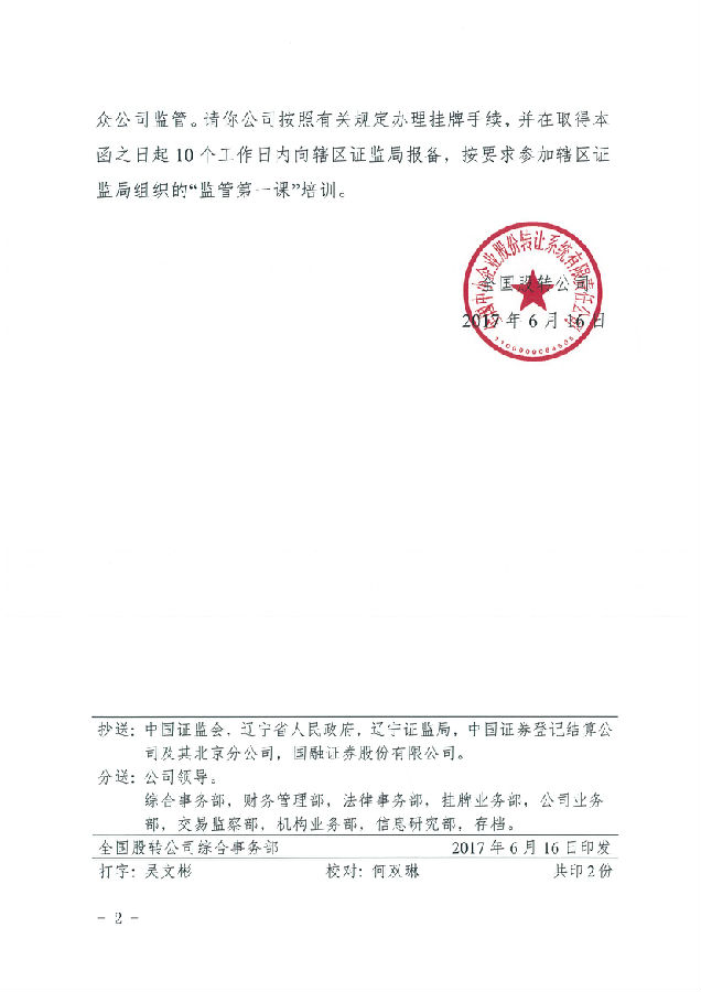 6月21日,辽宁国测黄金股份有限公司收到了全国中小企业股份转让系统(即新三板)有限责任公司同意挂牌的通知。证券简称“国测黄金”,证券代码“871661”。