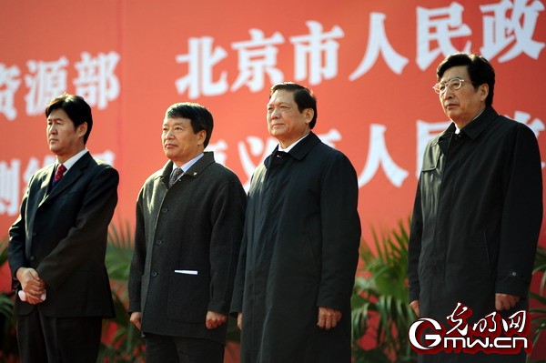 图为北京市委书记刘淇、国土资源部部长徐绍史、北京市长郭金龙、国家测绘局局长徐德明参加奠基仪式