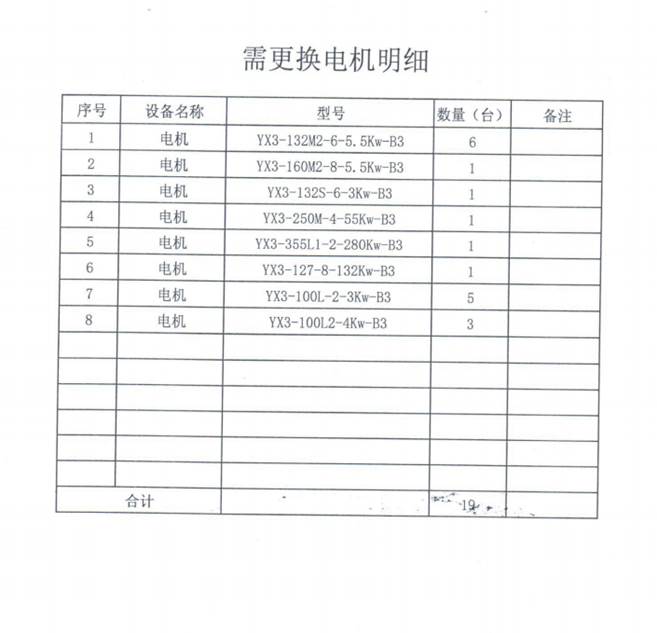 1.项目名称:节能电机19台(具体型号数量见附表)